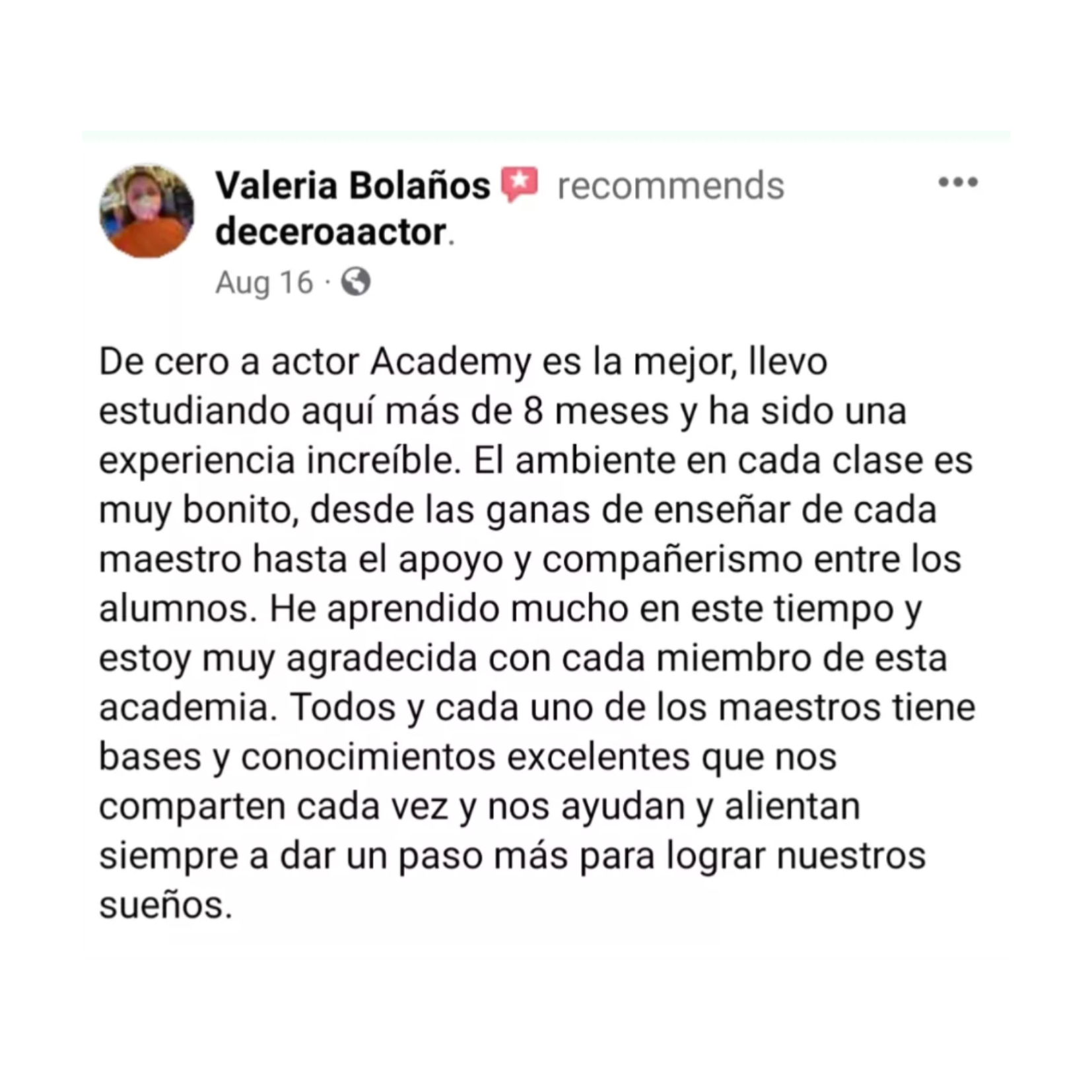 Viviana llegó a nuestra academia sin experiencia previa en actuación. Tan solo dos meses después de iniciar su formación, aplicando lo aprendido en su currículum actoral y book fotográfico, logró que una agencia de publicidad la seleccionara para participar en su primer comercial.